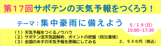 - SABOTEN気象台予報課は「みんなのテレ予報会議」に変更し奇数月に開催します