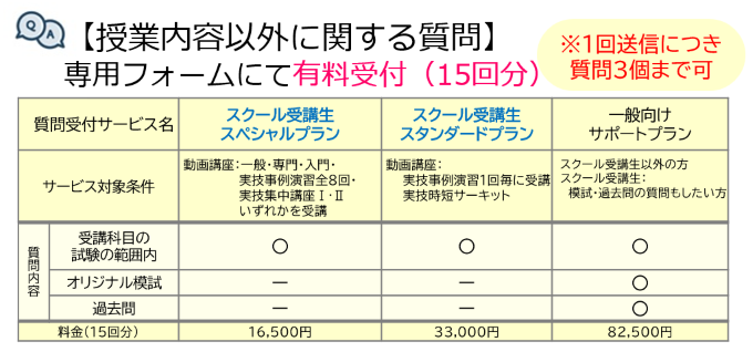 講師に直接質問することで、立ち止まることなく学習を進められ、さらに知識の抜け漏れや誤った理解を防ぐことができます。ぜひご活用ください。